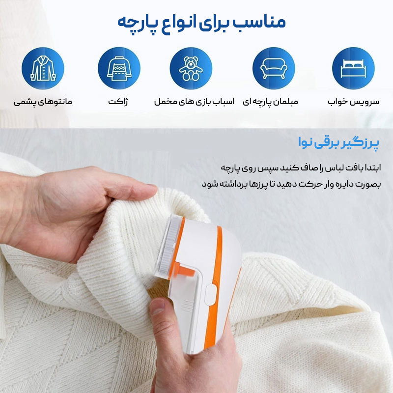 پرزگیر لباس نوا NOVA NLR-208 از کیفیت و قدرت بالایی برخوردار است و عملکرد خوبی را از خود ارائه می دهد. چرا که خیلی سریع و تمیز پرزها را می گیرد، بدون آنکه صدمه ای به بافت پارچه وارد کند. این پرزگیر برقی دارای یک تیغه گردان و صفحه محافظ است که برای تمامی البسه اعم از کت و شلوار، پیراهن، شال و روسری، مانتو، جوراب، لباس زیر، مبل، فرش و … بسیار مناسب است. همچنین به این نکته توجه کنید که روی انواع پارچه اعم از نخی، پشمی، الیاف مصنوعی و … قابل استفاده است. سری دستگاه قابل باز شدن است که تمیز کردن تیغه ها را آسان تر کرده است. تیغه ها بسیار تیز و برنده و از جنس استیل ضد زنگ هستند. یکی از نقاط مثبت این محصول دارا بودن محفظه جداگانه برای جمع آوری پرز و کرک ها است. همین امر باعث شده کار پرزگیری بهتر انجام شود و دچار مشکل نشوید. همچنین بعد از هر بار استفاده می توانید محفظه را جدا کرده و بشویید.